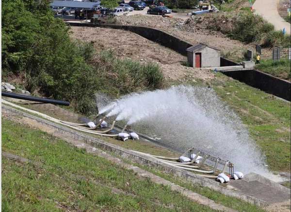 为尽快降低水库水位,市防指紧急调派市综合行政执法局的强排车对水库进行抽水作业。